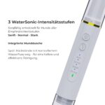 Der WaterSonic™ überzeugt durch ein schlankes, ergonomisches Design mit einstellbaren Intensitätsstufen, das die Zahnpflege einfach und angenehm macht.