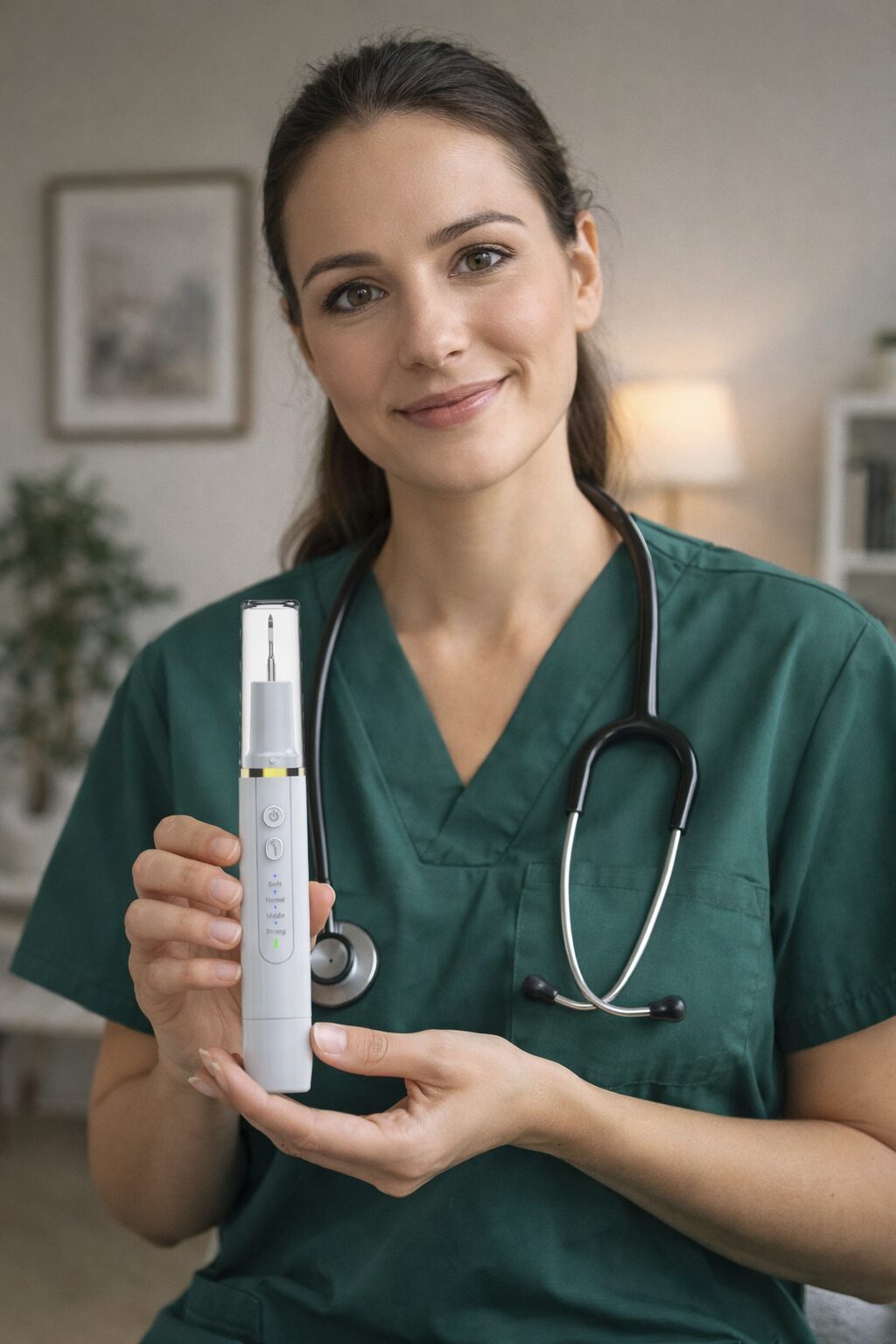 „Meiner Erfahrung nach kann der WaterSonic dabei helfen, verhärteten Zahnstein zu lösen und zu entfernen, was normales Zähneputzen oft nicht erreicht – und das, ohne Stress oder Reizungen des Zahnfleisches zu verursachen.“