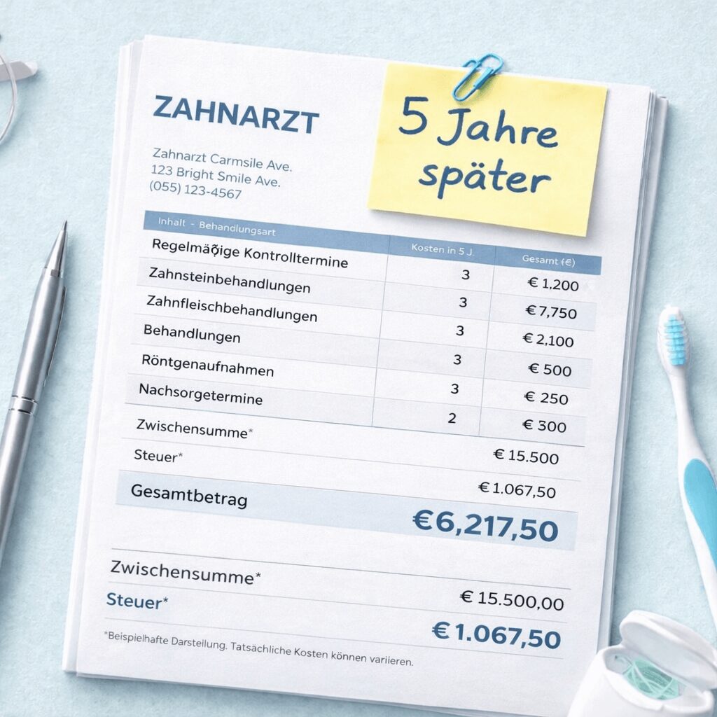 Es ist keine große Rechnung auf einmal. Es sind Jahre regelmäßiger Zahnarztbesuche, die sich still und leise summieren.