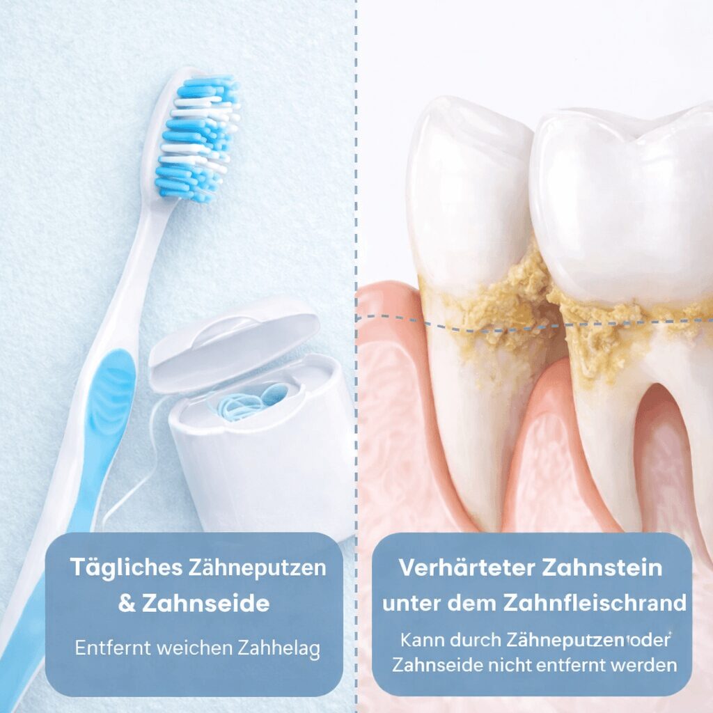 Denn tägliches Zähneputzen entfernt keinen verhärteten Zahnstein –